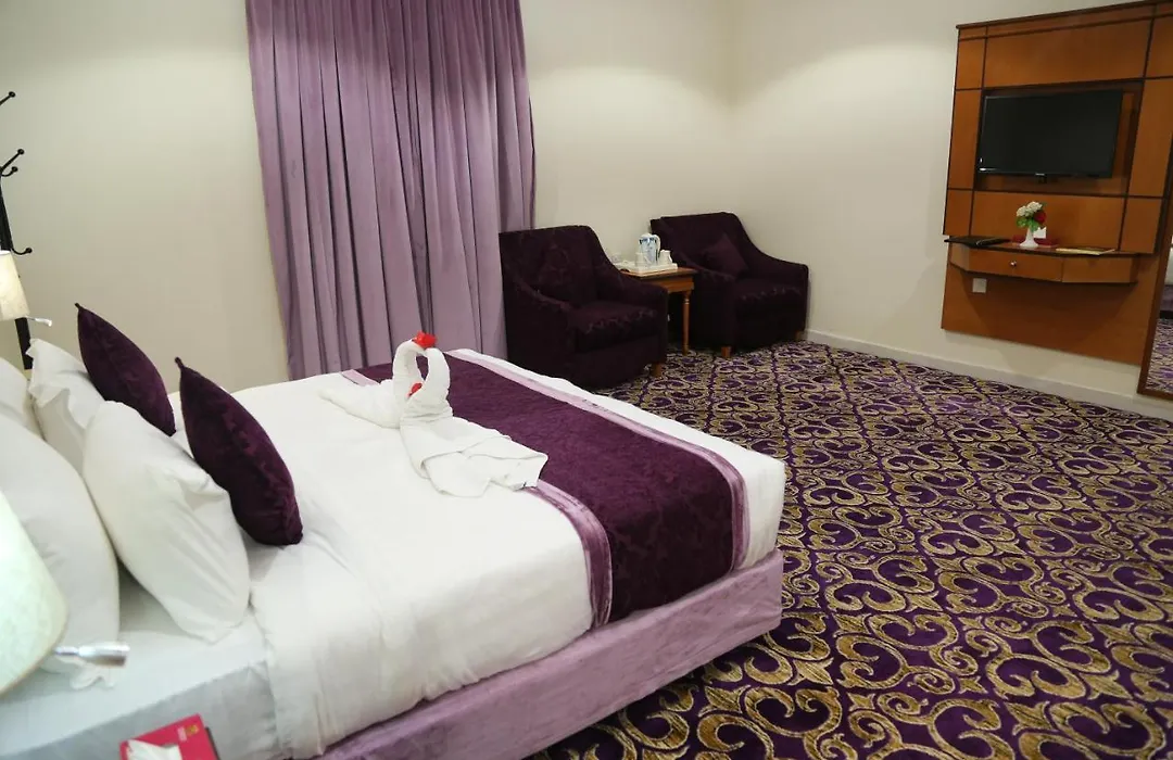 Amjad Al Deafah Hotel offers rooms with a living room and a dining area featuring air conditioning, along with a flat-screen TV with satellite channels. Some of these rooms also look out over the city.